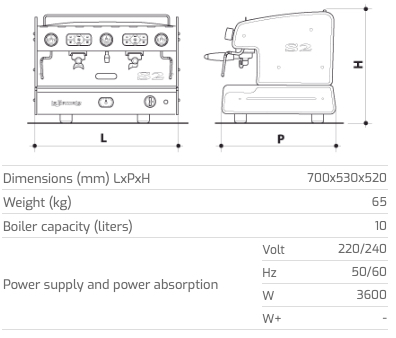 • Aquecimento de xícaras elétrico (na versão 2, 3 grupos e SPAZIO)